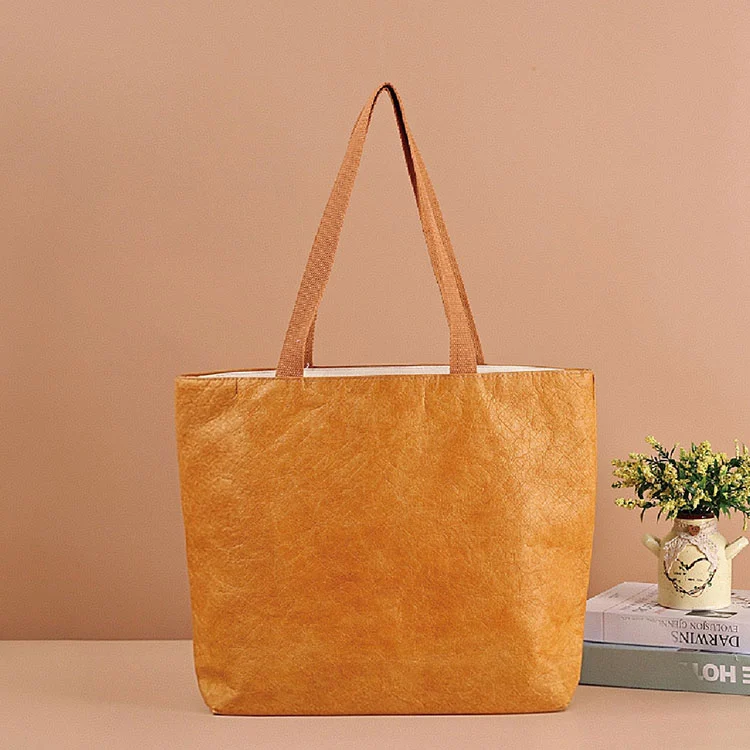 المادة الخام للحقيبة الورقية المقاومة للماء مصنوعة بنسبة 100% من مادة DuPont Tyvek، وهي مادة بولي إيثيلين عالية الكثافة يتم إنتاجها من خلال عملية الغزل السريع الحاصلة على براءة اختراع من DuPont. بالمقارنة مع الأكياس الورقية التقليدية، فهي أخف وزنًا ولكنها تتمتع بقوة غير عادية - مقاومة ممتازة للتمزق ومقاومة للثقب. حتى بعد الطي المتكرر أو الانحناء أو التعامل الخشن، فإنه لن ينكسر بسهولة. وفي الوقت نفسه، يتمتع ورق DuPont بخصائص رائعة مقاومة للماء والزيت. يمكن لهيكل الألياف الكثيفة أن يمنع اختراق السائل بقوة. سواء أثناء النقل أو في بيئة رطبة، يمكن ضمان بقاء المحتويات داخل الحقيبة جافة وسليمة.